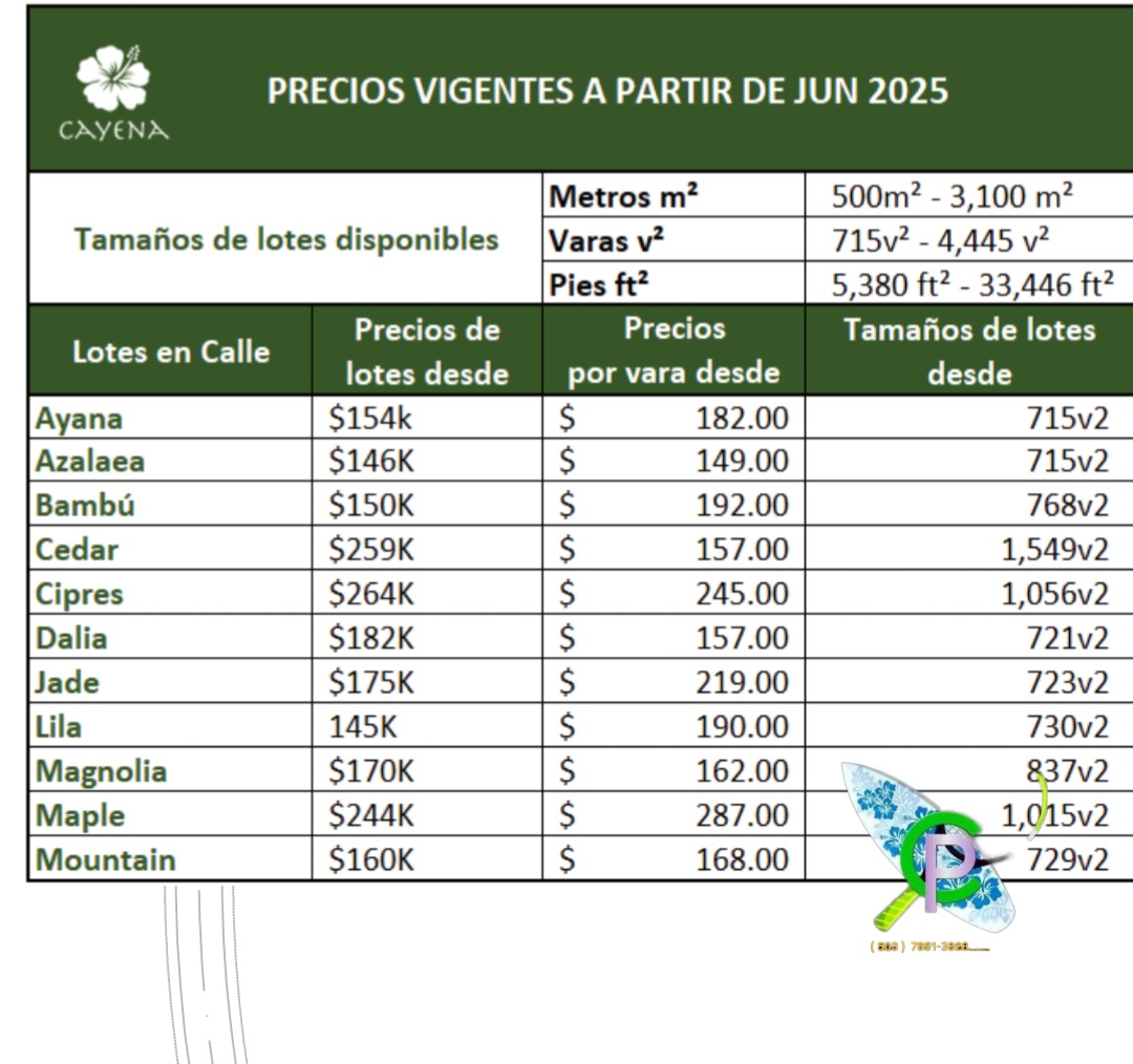 Lotes disponibles empiezan desde $139,000 hasta $319,000.